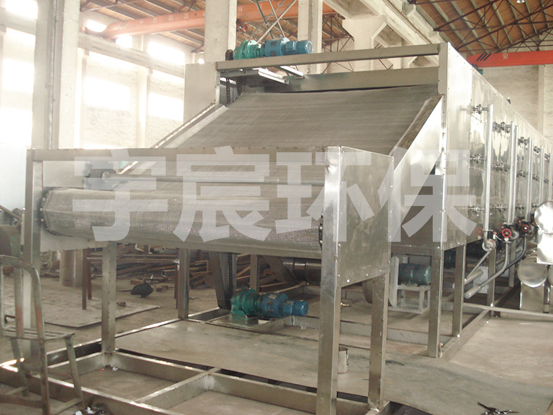 DW系列多层带式干燥机是成批生产用的连续式干燥设备,用于透气性较好的片状、条状、颗粒状物料的干燥,对于脱水蔬菜、催化剂、中药饮片等类含水率高、而温度不允许高的物料尤为合适;该系列干燥机具有干燥速度快、蒸发强度高、产品质量好的优点,对脱水滤饼状的膏状物料,需经造粒或制成条状后方可干燥。