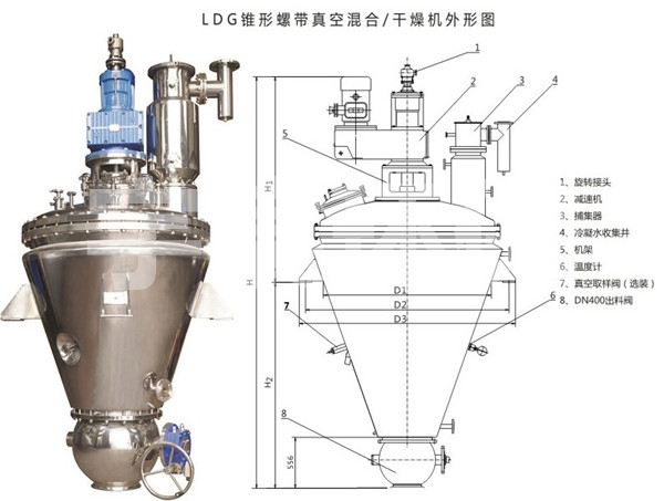 1.单锥真空干燥机特点:适用性强:结合本公司特殊干燥工艺,能适应粘度大、热穿透性差,易滚球、易抱团成块胡物料的干燥。