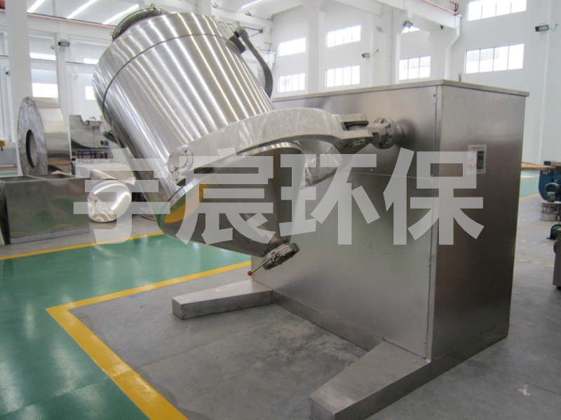 结构:该机由机座、传动系统、电器控制系统、多向运动机构、混合筒等部件组成。与物料直接接触的混合筒采用不锈钢材料制造,桶体内外壁均经镜面抛光。