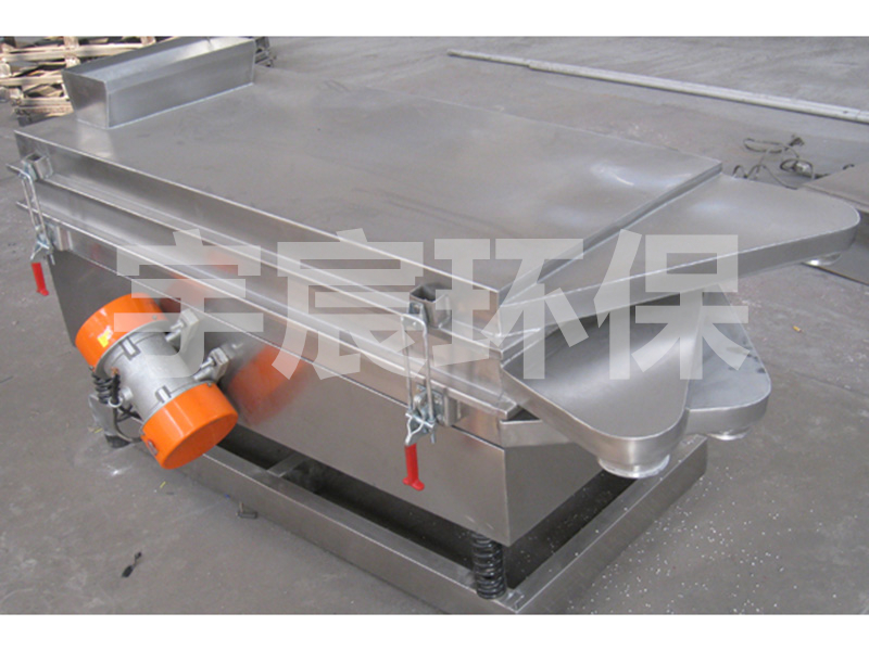 本机上部采用快拆式手柄,把整机连成一个整体,上盖全密封、有效防止物料在过筛时由于振动而产生粉尘飞扬。筛体下部安装振动电机,有效保证了物料的结构紧凑,下部采用弹簧减振,使整机在平稳状态下工作。下面底座采用可调式,可调节正在过筛时的筛面倾斜角度,根据物料特性以取得过筛效果。
