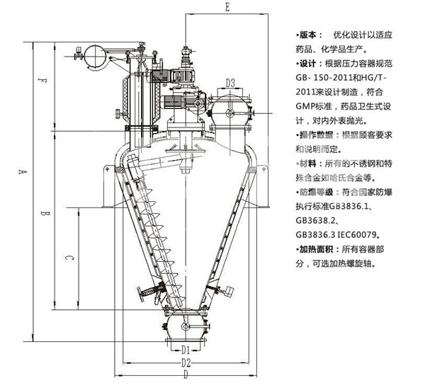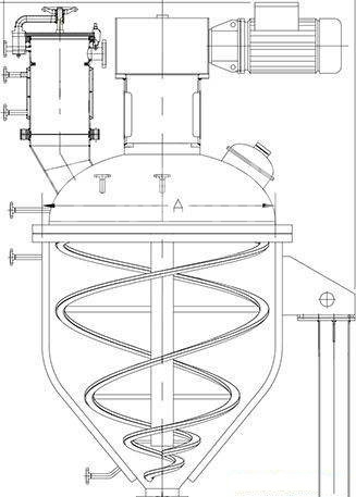 螺旋搅拌可把物料由底部提升到高点再自由散落的不断运动,导致物料不断的在夹套和螺旋带加热区运动。①增加了加热面积②使物料保持松散的工况下运动。
