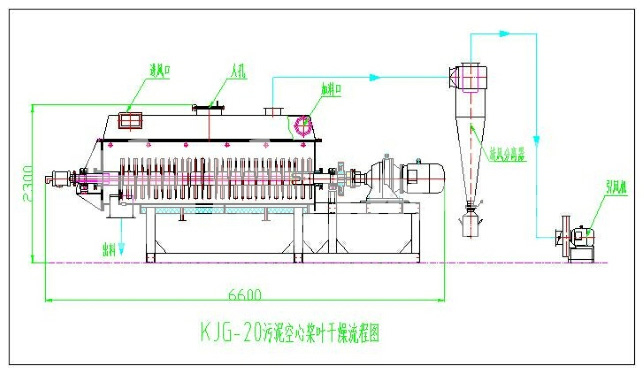 空心轴上密集排列着楔型中空桨叶,热介质经空心轴流经桨叶。单位有效容积内传热面积很大,热介质温度从-40℃到320℃,可以是水蒸汽,也可以是液体型:如热水、导热油等。间接传导加热,没有携带空气带走热量,热量均用来加热物料。热量损失仅为通过器体保温层向环境的散热。楔型桨叶传热面具有自清洁功能。物料颗粒与楔型面的相对运动产生洗刷作用,能够洗刷掉楔型面上附着物料,使运转中一直保持着清洁的传热面。 桨叶干燥机的壳体为Ω型,壳体内一般安排二到四根空心搅拌轴。壳体有密封端盖与上盖,防止物料粉尘外泄而充分发挥作用。